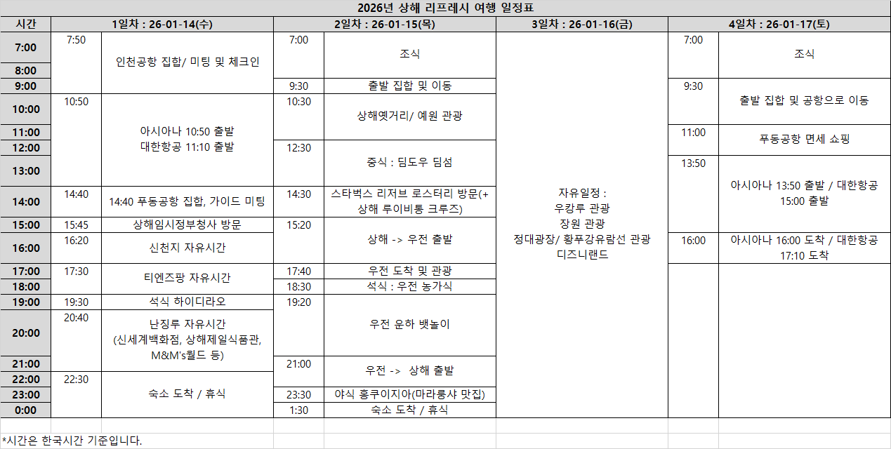 2026년 1월 장기근속자 리프레시 휴가를 상해로 떠나게 되었습니다.
